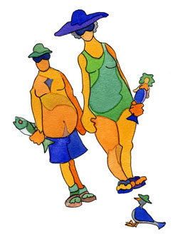Similarly, these happy tee-shirt designs were carried by a gift shop in nearby Qualicum. Theo will post you the originals for $50+postage each or an equivalent donation of your own to Doctors without Borders.