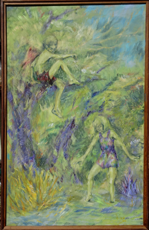 Jump. 18×26 inches, 46×67 cm. oil on canvas, professionally framed. $500