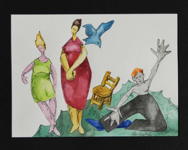 The three small, playful watercolours above, each 7.5×11 inches, are each $100.
