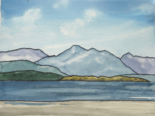 Theo did most of the paintings immediately below as illustrations for his hiking books. He is selling the dwindling supply of original paintings for direct donation to Doctors without Borders.