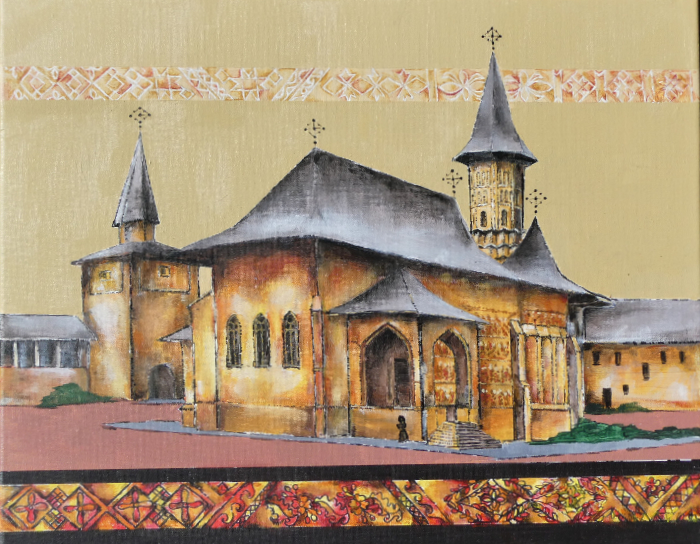 Romanian painted monastery. 16×20 inches. 40×51 cm. $500